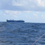 Départ à 8h30 comme prévu.Vent plus soutenu que sur les grib, qui nous a permis de faire un peu de route directe entre les iles de Sao Jorge et Terceira. Nous faisons route depuis au 60° à 125° du vent apparent, nous allons en effet chercher un peu de pression au Nord et une bascule prévue pour le milieu de la nuit prochaine. Ce matin, il nous reste 960 milles avant Gibraltar, soit une progression de 150 milles sur la route directe, ce qui est parfait. Le Cargo Bahri Jazan vient de se dérouter pour nous céder la priorité après un échange VHF. Nous collons à notre progression virtuelle donnée par le logiciel de