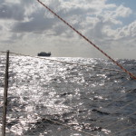 On débranche et rebranche tout ce qu’on trouve dans la famille seatalk, et au bout de 2 heures, avec un peu de WD40, ca remarche. On a fait les quarts avec la corne de brume attachée a côté du safran, pour pouvoir appeler a l’aide les copains qui dorment, car une fois qu’on a sauté sur la barre, plus moyen de la lacher. On a trouvé une manip qui semble fonctionner (un seul fils à débrancher et rebrancher sur la commande de pilote… Le pb est un peu récurent, voila pour la partie Pilote.