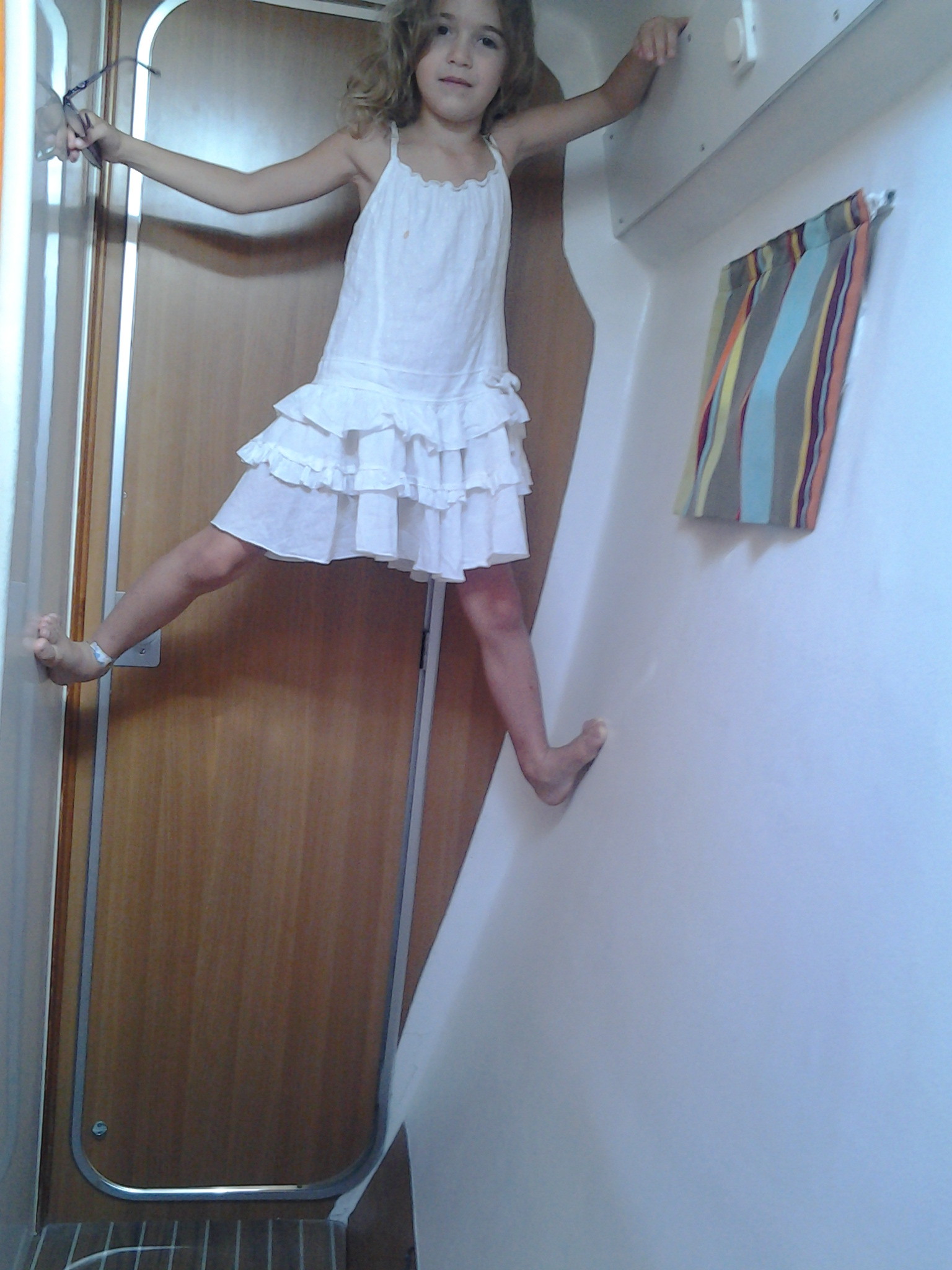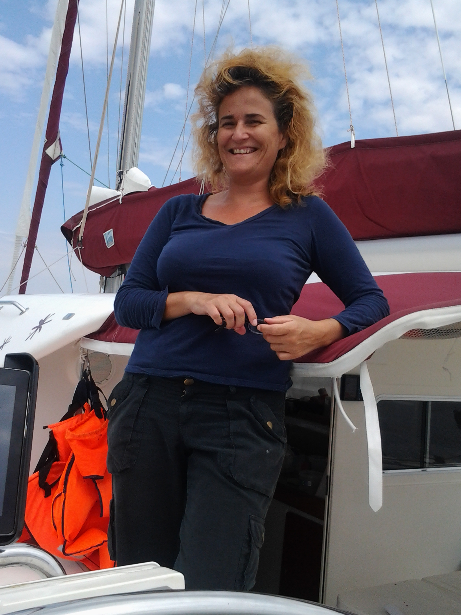 C’est chaud, la gestion de la scolarité de trois enfants en même temps surtout quand ces enfants sont les tiens. Je ne sais pas comment font les instits. Qui peut me donner un tuyau ? Surtout avec Louane qui ne veut pas du tout travailler seule, ne serait-ce que 5 minutes ! De plus, les évaluations des enfants tombaient dès la fin de la première semaine. Il fallait donc les renvoyer par internet sur le site du CNED. Nous avons pris une connexion wi-fi pourrie au port, si bien que j’ai fini, samedi matin, assise sur le ponton à côté de l’antenne pour parvenir à envoyer ces documents, après 4h00 de bataille informatique. Situation cocasse, il fallait que j’enregistre la voix des enfants sur le site du CNED, en format MP3. Or, je n’ai pu le faire que sur le ponton, à 100 mètre du bateau. On entend donc sur l’évaluation orale de Thibault, la répétition du concert de rock de Gibraltar qui aura lieu le soir, le mec en tongues, une voiture qui passe et d’autres bruits tous aussi bizarres les uns que les autres… avec, pour fond sonore la petite voix de Thibault qui cite les lettres de son prénom et récite difficilement sa comptine, en ajoutant un « Regarde maman, un mulet » ou « ça me gratte le bouton de moustique ! ».